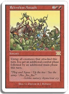 Untap all creatures that attacked this turn. You get an additional combat phase followed by an additional main phase this turn.