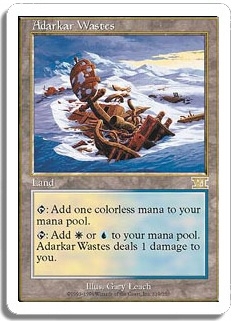 T: Add one colorless mana to your mana pool. T: Add W or U to your mana pool. Adarkar Wastes deals 1 damage to you.