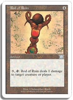 3, T: Rod of Ruin deals 1 damage to target creature or player.