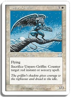 Flying Sacrifice Unyaro Griffin: Counter target red instant or sorcery spell.