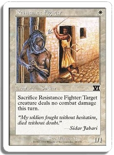Sacrifice Resistance Fighter: Prevent all combat damage that would be dealt by target creature this turn.