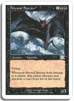 Flying Whenever Abyssal Specter deals damage to a player, that player discards a card from his or her hand.