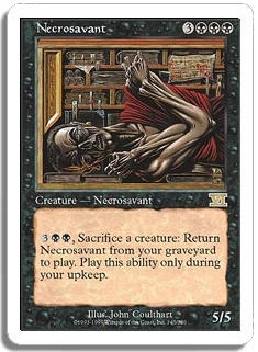 3BB, Sacrifice a creature: Return Necrosavant from your graveyard to play. Play this ability only during your upkeep and only if Necrosavant is in your graveyard.