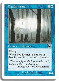 Flying When Fog Elemental attacks or blocks, sacrifice it at end of combat.