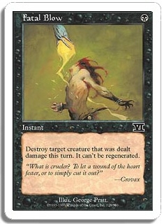 Destroy target creature that was dealt damage this turn. It can't be regenerated.