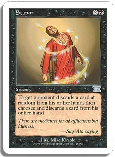 Target opponent discards a card at random from his or her hand, then chooses and discards a card from his or her hand.