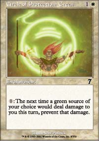1: The next time a green source of your choice would deal damage to you this turn, prevent that damage.