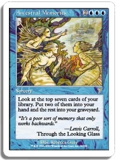 Look at the top seven cards of your library. Put two of them into your hand and the rest into your graveyard.