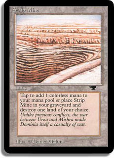 <T>: Add one colorless mana to your mana pool. <T>: Sacrifice Strip Mine to destroy target land.