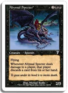 Flying Whenever Abyssal Specter deals damage to a player, that player discards a card from his or her hand.