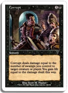 Corrupt deals damage equal to the number of swamps you control to target creature or player. You gain life equal to the damage dealt this way.
