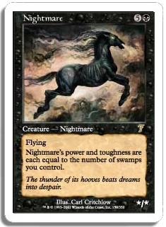 Flying Nightmare's power and toughness are each equal to the number of swamps you control.