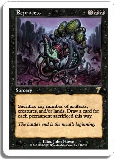 Sacrifice any number of artifacts, creatures, and/or lands. Draw a card for each permanent sacrificed this way.