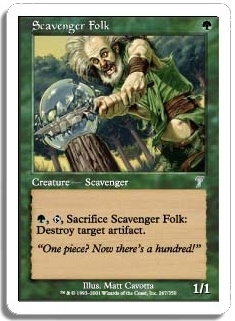 G, T, Sacrifice Scavenger Folk: Destroy target artifact.