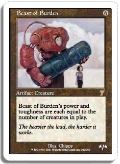 Beast of Burden's power and toughness are each equal to the number of creatures in play.