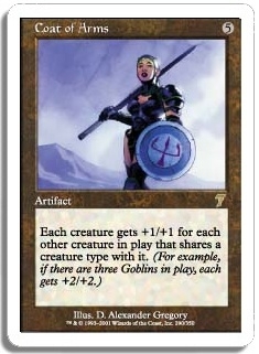 Each creature gets +1/+1 for each other creature in play that shares a creature type with it. (For example, if there are three Goblins in play, each gets +2/+2.)