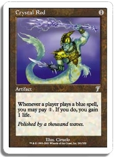 Whenever a player plays a blue spell, you may pay 1. If you do, you gain 1 life.