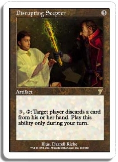 3, T: Target player discards a card from his or her hand. Play this ability only during your turn.