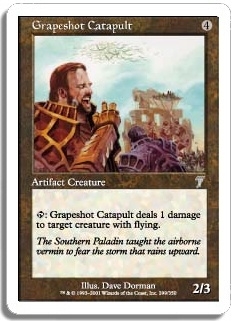 T: Grapeshot Catapult deals 1 damage to target creature with flying.