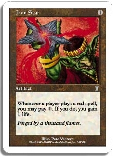 Whenever a player plays a red spell, you may pay 1. If you do, you gain 1 life.
