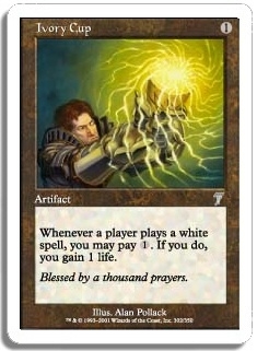 Whenever a player plays a white spell, you may pay 1. If you do, you gain 1 life.