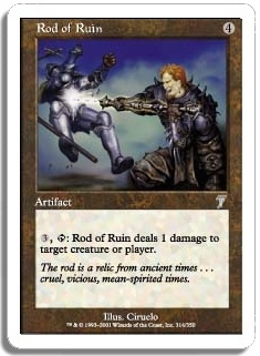 3, T: Rod of Ruin deals 1 damage to target creature or player.