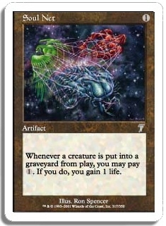 Whenever a creature is put into a graveyard from play, you may pay 1. If you do, you gain 1 life.
