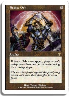 If Static Orb is untapped, players can't untap more than two permanents during their untap steps.