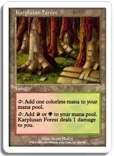 T: Add one colorless mana to your mana pool. T: Add R or G to your mana pool. Karplusan Forest deals 1 damage to you.