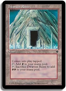Comes into play tapped. <T>: Add <R> to your mana pool. <T>: Sacrifice Dwarven Ruins to add <RR> to your mana pool.