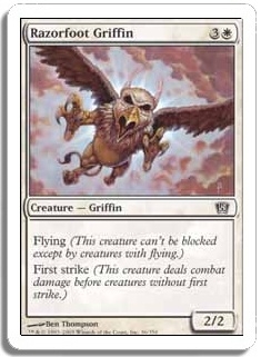 Flying (This creature can't be blocked except by creatures with flying.) First strike (This creature deals combat damage before creatures without first strike.)