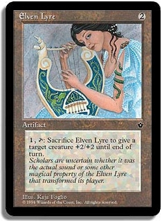 <1,T>: Sacrifice Elven Lyre to give a target creature +2/+2 until end of turn.