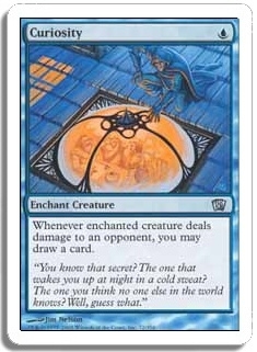 Whenever enchanted creature deals damage to an opponent, you may draw a card.