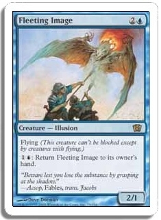 Flying (This creature can't be blocked except by creatures with flying.) 1U: Return Fleeting Image to its owner's hand.