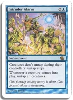 Creatures don't untap during their controllers' untap steps. Whenever a creature comes into play, untap all creatures.