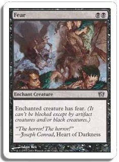 Enchanted creature has fear. (It can't be blocked except by artifact creatures and/or black creatures.)