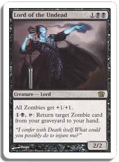 All Zombies get +1/+1. 1B, T: Return target Zombie card from your graveyard to your hand.