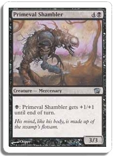 B: Primeval Shambler gets +1/+1 until end of turn.