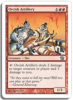 T: Orcish Artillery deals 2 damage to target creature or player and 3 damage to you.