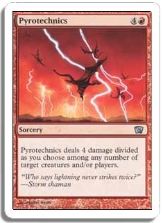 Pyrotechnics deals 4 damage divided as you choose among any number of target creatures and/or players.