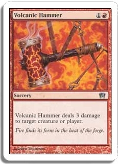 Volcanic Hammer deals 3 damage to target creature or player.
