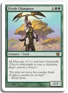 All Elves get +1/+1 and have forestwalk. (They're unblockable as long as defending player controls a Forest.)
