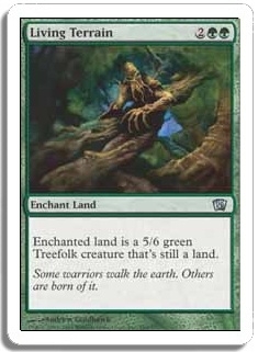 Enchanted land is a 5/6 green Treefolk creature that's still a land.
