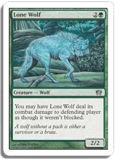 You may have Lone Wolf deal its combat damage to defending player as though it weren't blocked.