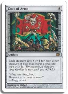 Each creature gets +1/+1 for each other creature in play that shares a creature type with it. (For example, if there are three Goblins in play, each gets +2/+2.)