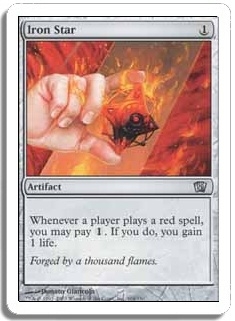 Whenever a player plays a red spell, you may pay 1. If you do, you gain 1 life.