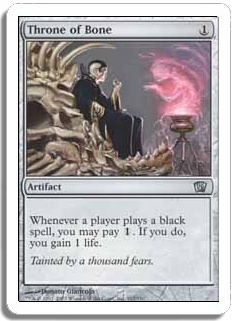 Whenever a player plays a black spell, you may pay 1. If you do, you gain 1 life.