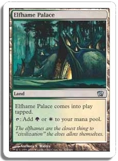 Elfhame Palace comes into play tapped. T: Add G or W to your mana pool.