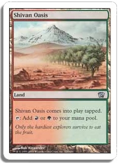 Shivan Oasis comes into play tapped. T: Add R or G to your mana pool.