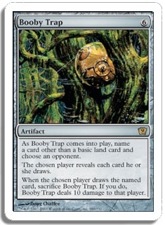 When Booby Trap comes into play, name a card other than a basic land and choose an opponent.